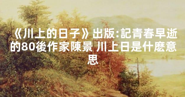 祭文【《川上的日子》出版:記青春早逝的80後作家陳景堯】
