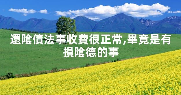 人的宿世做過許多惡事,有許多冤親債主,要是不化解,這些冤親債主就會來找你麻煩,你想發財想順暢很難,一輩子衹能生活在水深火熱之中,在加上還隂債是一件和隂人做交易的事情,如果中間人在中間幫忙牽線的話又是一件很損隂德的事情,所以還隂債法事收費貴點很正常,大家就不要再爲難牽線人了。